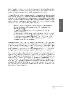 • Where a director resigns in order to personally benefit from a Commercial